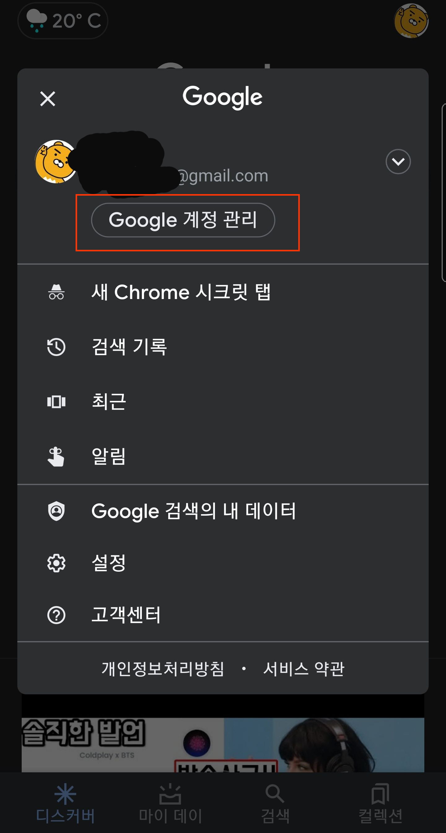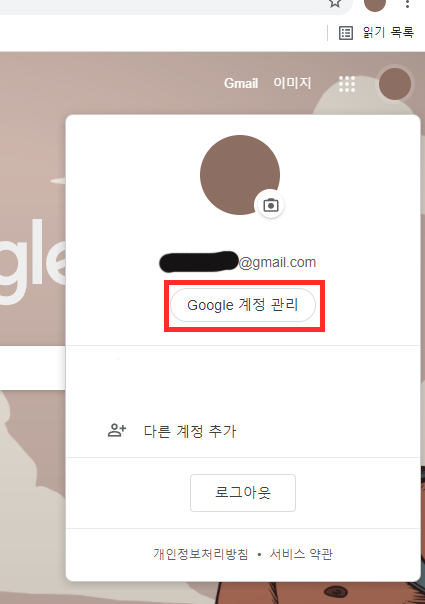 pc와 모바일 버전 모두 있으니 살펴보시고 천천히 해보세요 구글 홈페이지를 검색 후 삭제할 계정으로 로그인을 해줍니다. 그럼 오른쪽 상단에 아이콘이 보이실 텐데요 클릭하여 "Google 계정 관리" 눌러줍니다.