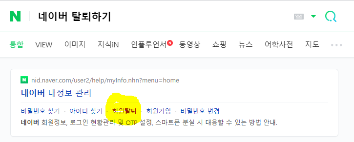 국민 포털사이트 네이버, 오늘은 NAVER 탈퇴 방법을 살펴보도록 하겠습니다. 마침 쓰지 않는 계정이 있으니 잘 됐네요 탈퇴할 아이디로 로그인합니다. 홈에서 내 정보를 통해 탈퇴 신청을 할 수도 있지만 좀 더 빠르게 진입하시려면 "네이버 탈퇴" 검색 후 "회원탈퇴"로 진입하시면 됩니다. 모바일인 경우 내 정보관리를 클릭하고 화면을 내려주시면 탈퇴 버튼이 보이실 겁니다.