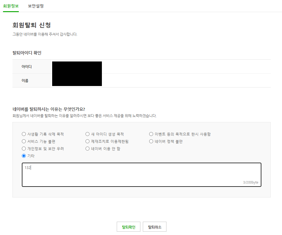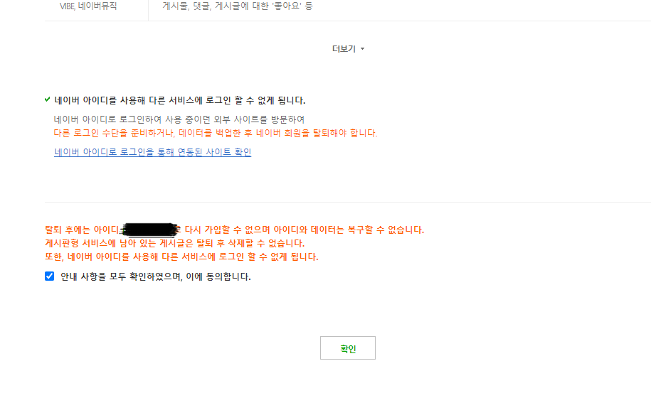 안내사항을 꼼꼼히 살펴보신 후 체크박스에 표시합니다. 비밀번호 재확인을 하고 탈퇴 신청하시면 끝..